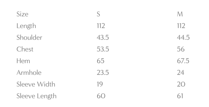 SIZE S : Lingkar dada 107cm / Panjang 112cm