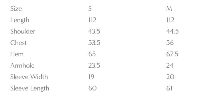 SIZE S : Lingkar dada 107cm / Panjang 112cm