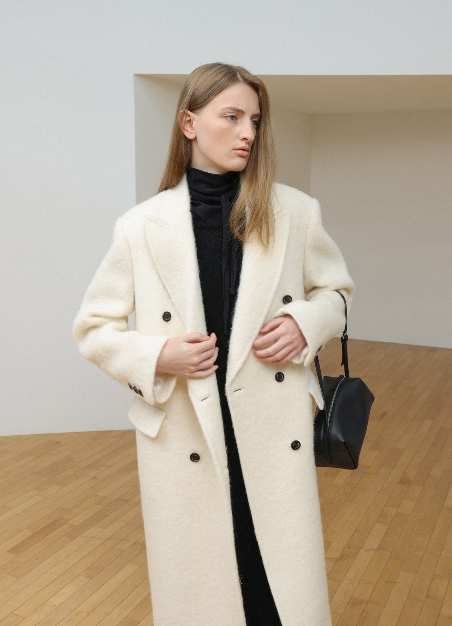 LEVAR Hairy Alpaca Blended Classic Coat - Vanilla Cream