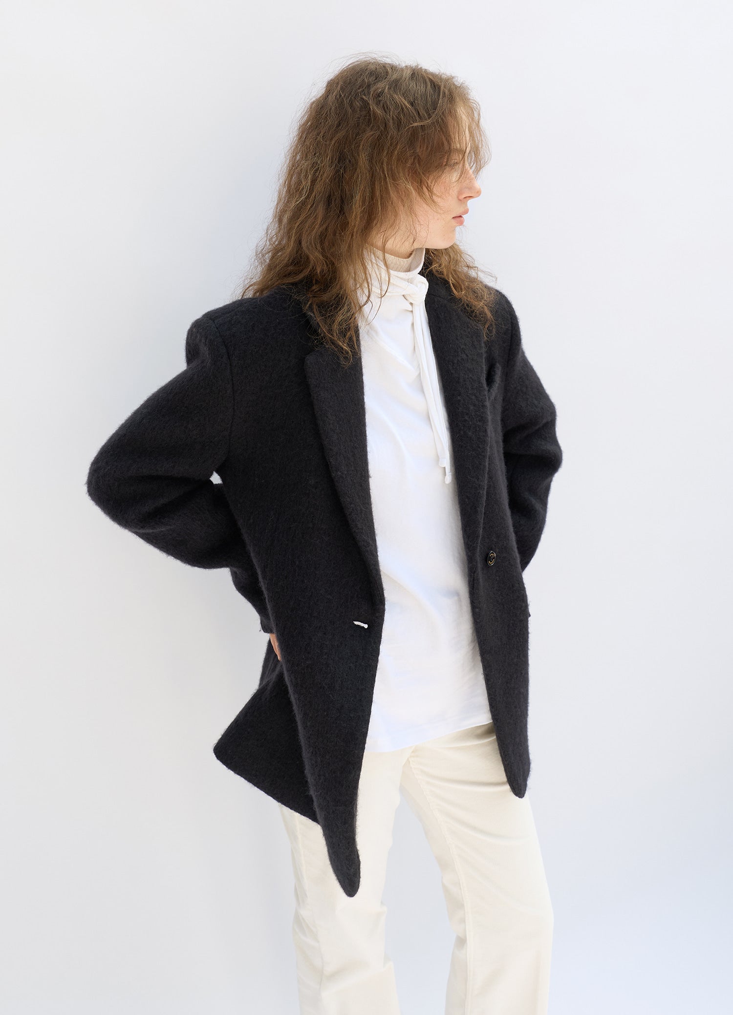 LEVAR Hairy Alpaca Blended Single Jacket - Black