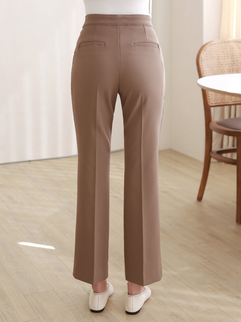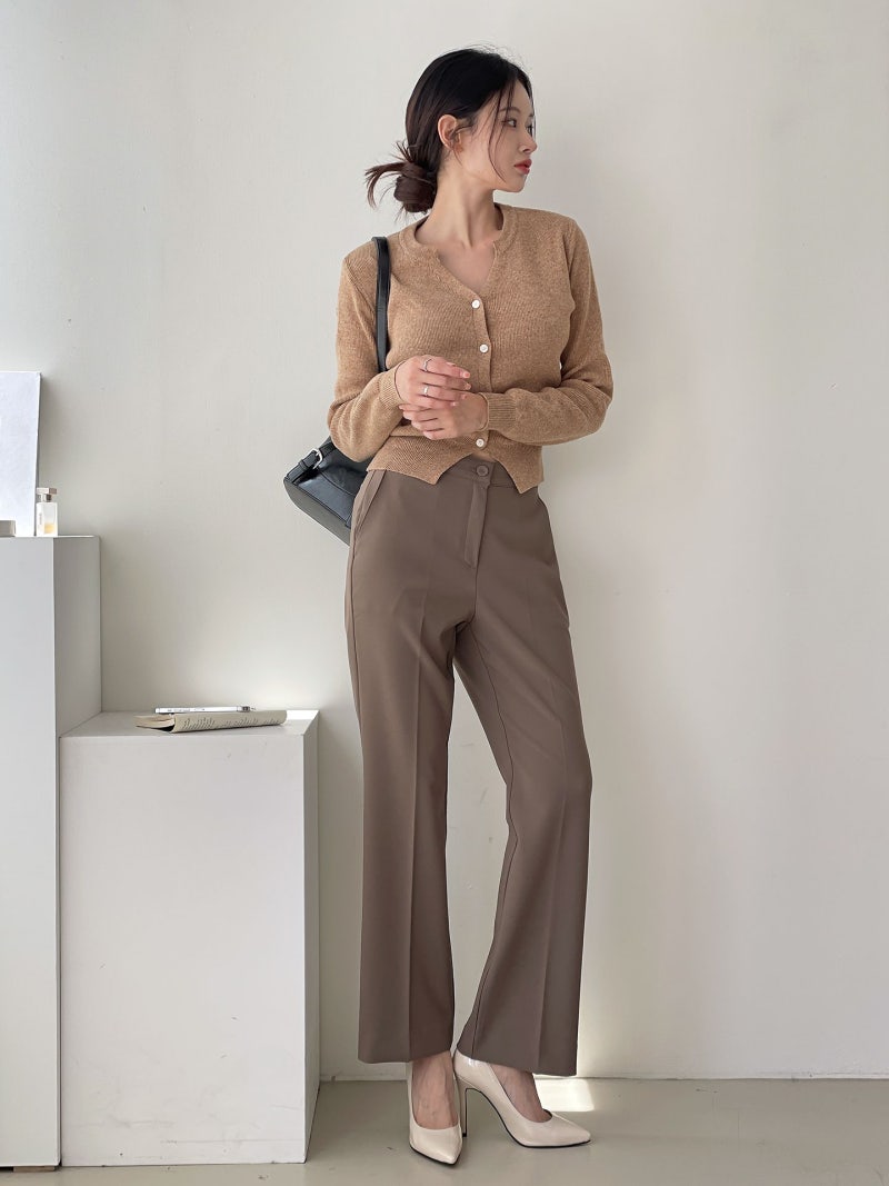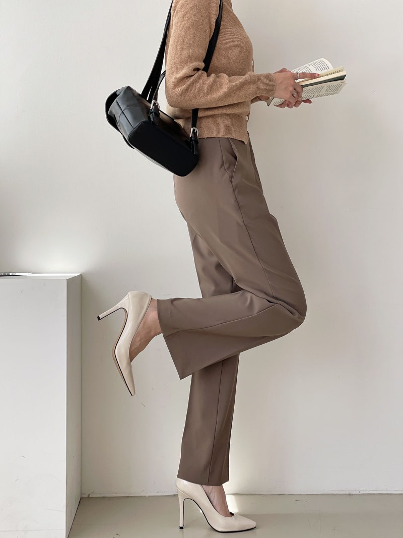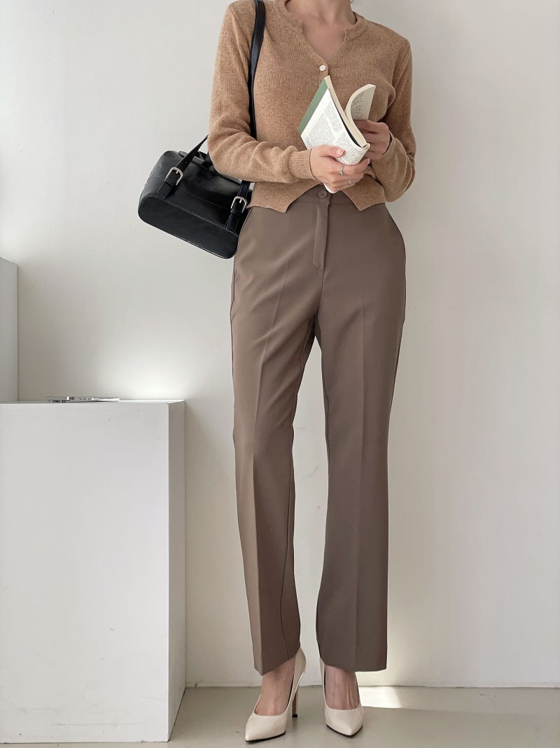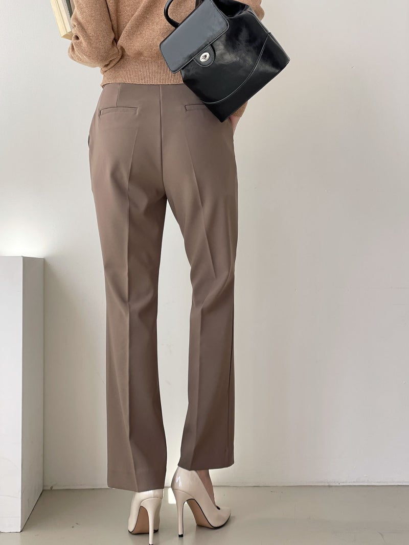 Slim bootcut silhouette dari pinggang sampai ujung kaki → natural & rapi