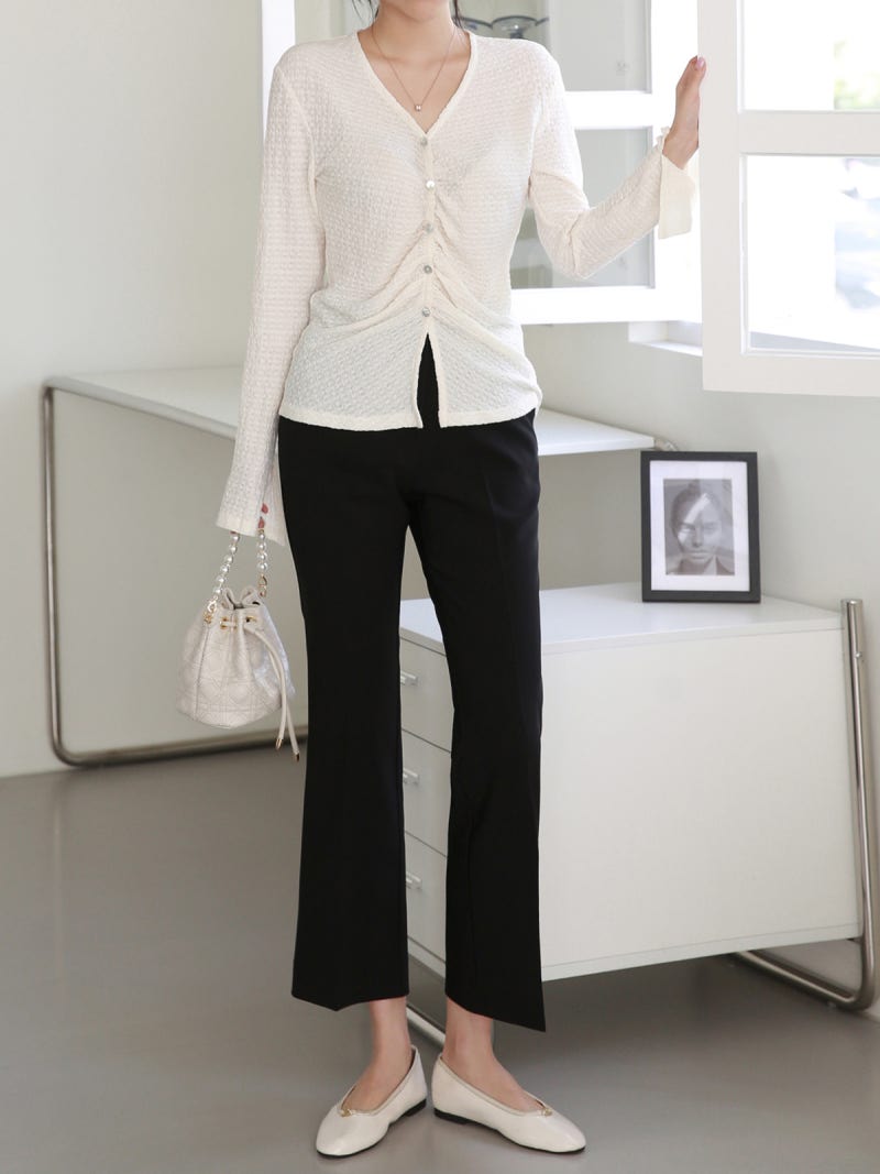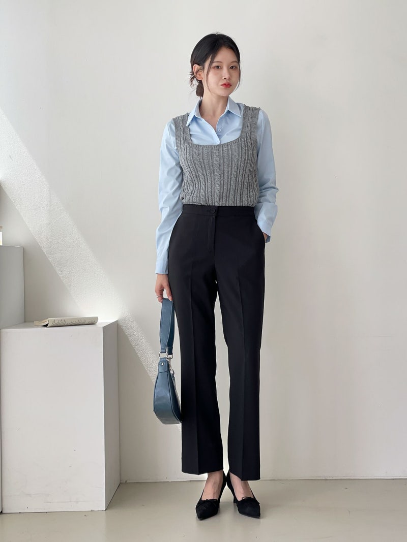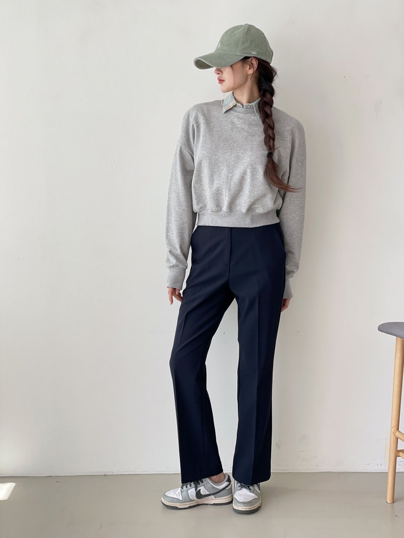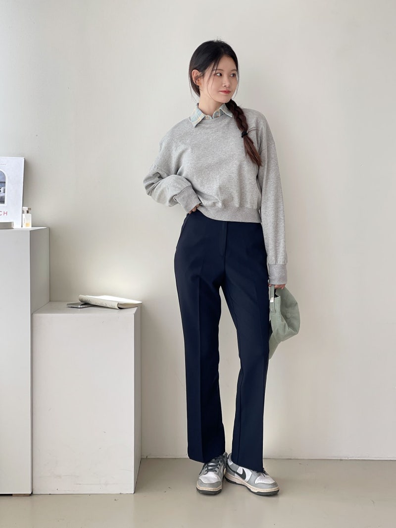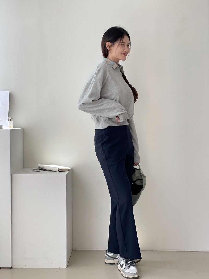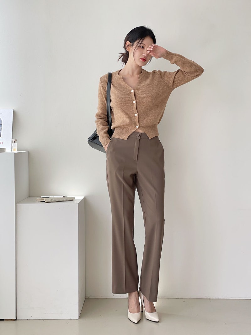Slim bootcut silhouette dari pinggang sampai ujung kaki → natural & rapi